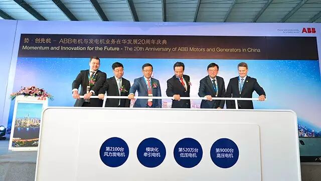 在电机与发电机业务20周年庆典上,ABB电机本地制造的第520万台ABB低压电机和第9000台高压电机也相继下线。其中,ABB电机展示的M2BAX系列低压电机,不仅高效节能,在结构上也进行了更贴合中国客户使用环境的设计,包括基于此产品平台开发的M2SE烟道电机和M2BAX船用电机等多种应用类型。而2014年推出的新一代高压紧凑型模块化电机NMI和铸铁型高压电机NXR也于今年开发出多个新增型号,为客户带来全系列的产品和解决方案。